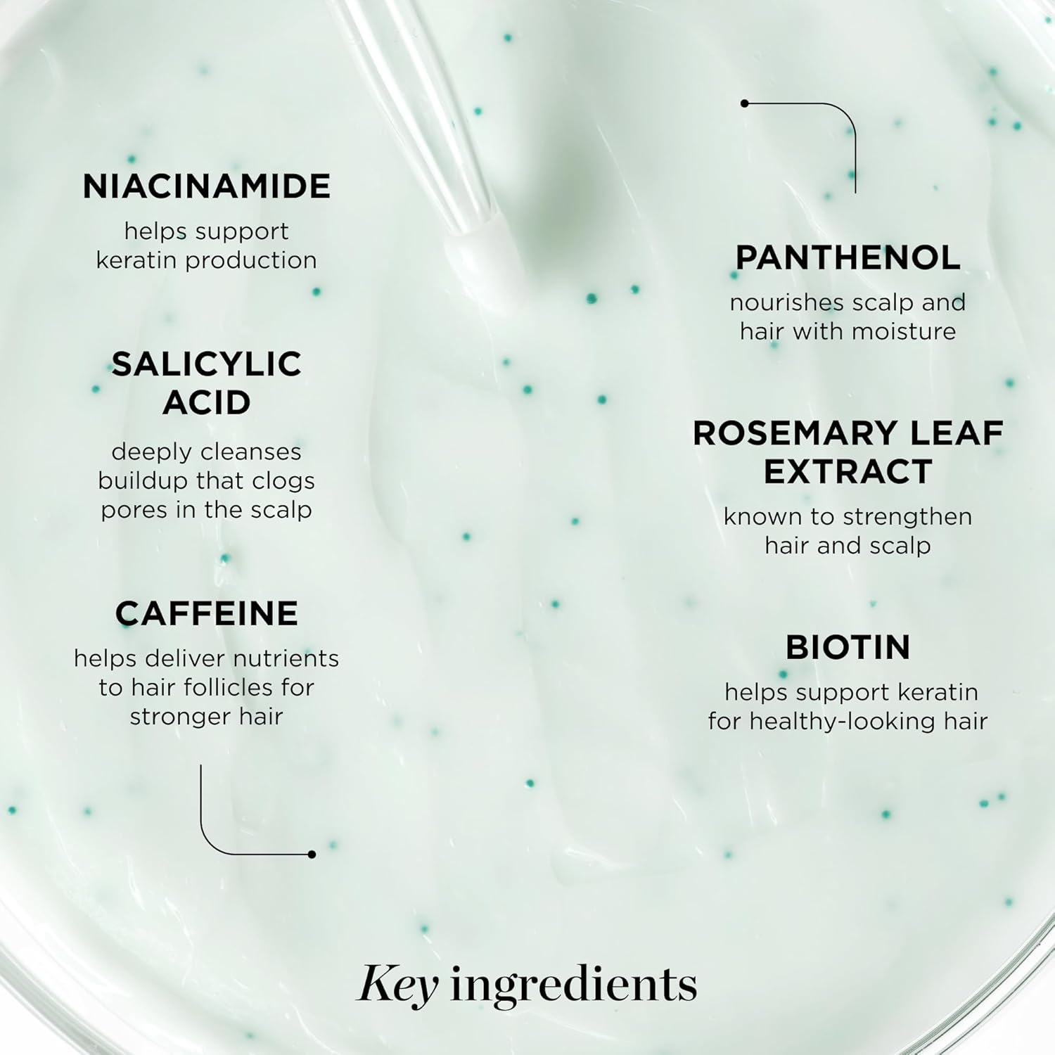 • EXFOLIATES, CLEANSES, AND MOISTURIZES, INCREASING CIRCULATION AND ENCOURAGING HAIR GROWTH AND STRENGTH. Formulated with biotin, rosemary leaf extract, salicylic acid, panthenol, niacinamide, caffeine and formulated without parabens, silicones, sulfates and gluten.